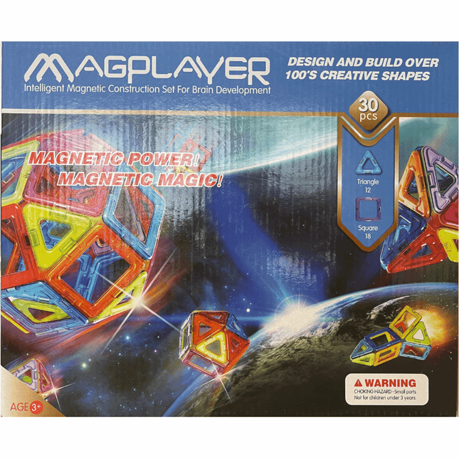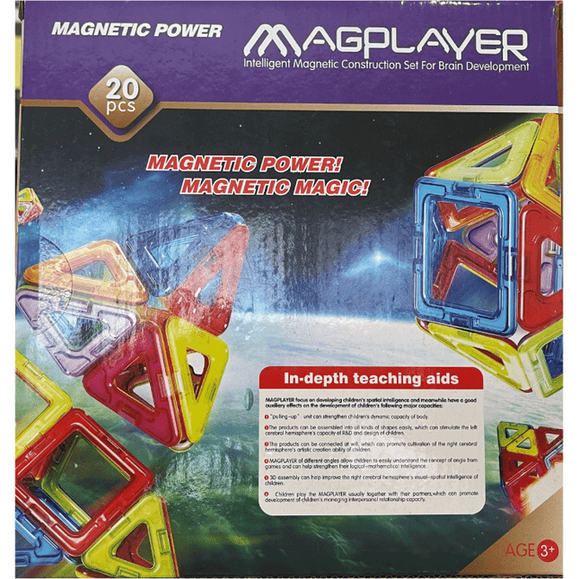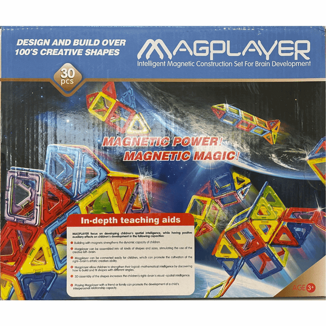These colourful construction sets assist in brain development as kids assemble whatever their hearts desire from the square and triangular magnetic pieces. Whether it's a spaceship or a Ferris wheel, if your kid can dream it, they can build it.Magplayer kits also act as great teaching aids, focusing on developing children's spatial awareness, artistic creation ability, logical-mathematic intelligence and, through group play, assist them in developing friendships. They truly are unique toys!