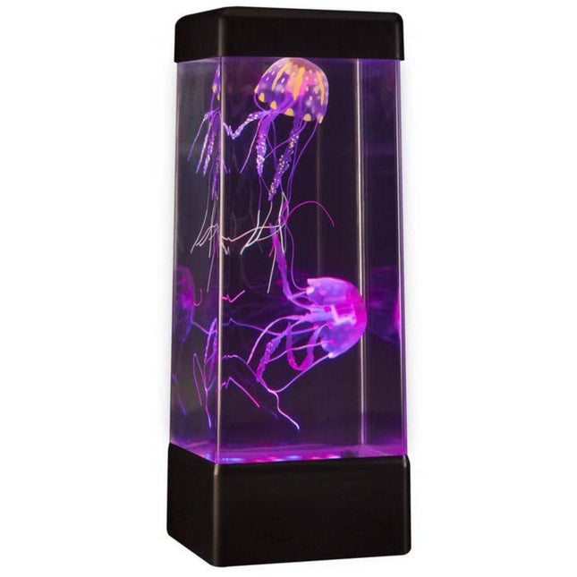 Realistic jellyfish with elegant swimming motionFeatures 8 user selectable Lighting modes – Red, Blue, Green, Aqua, Purple, Yellow, Flashing and Auto Colour Change2 x Jellyfish included18 LED bright colour illuminationAuto colour change or hold on your favourite colourMains operated; adapter includedRuns continuously without stoppingTank Size: 36cm x 13.5cm x 13.5cm