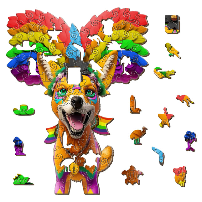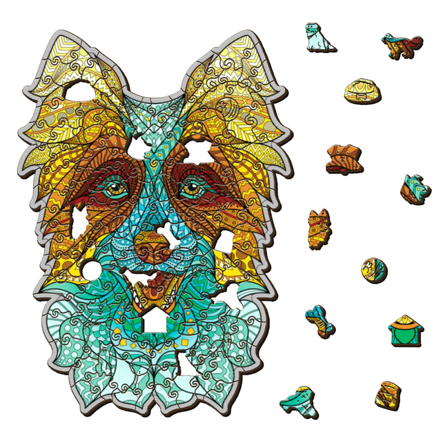 The Aussie Shepherd of Legends! "Fierce, intelligent, and born of the storm—this Australian Shepherd commands the power of the elements with unwavering spirit! Each uniquely shaped puzzle piece reveals hidden surprises, telling the tale of this electrifying warrior. Assemble the legend, piece by piece, and let the storm rage on!"