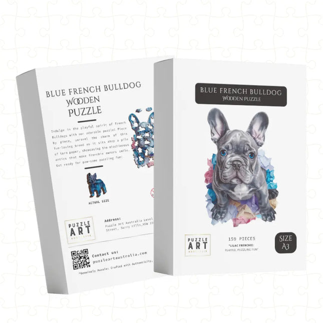 "Lilac Frenchie: Playful Puzzling Fun" Indulge in the playful spirit of French Bulldogs with our adorable puzzle! 🐶💜 Piece by piece, unravel the charm of this fun-loving breed as it sits atop a pile of torn paper, showcasing the mischievous antics that make Frenchie owners smile. Get ready for paw-some puzzling fun! Large (A3) Most Popular 📏 Approx 39.3 × 29.6 cm (19.6 x 14.7 inches) 🧩 159 pieces ⏱ Assembly time: 4-6 hours Small (A5) Perfect for Beginners 📏 Approx 15.4 × 11.6 cm (7.7 x 5.8 inches) 🧩 77 pieces ⏱ Assembly time: 2-3 hours