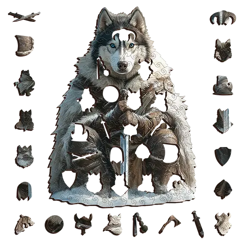 The Wolf-Knight’s Legacy Step into a world of ice and legend with our Frostborn Guardian puzzle! This noble husky warrior, clad in battle-worn armor and gripping a sword of destiny, stands as a protector of the frozen realm. Every uniquely shaped puzzle piece tells the tale of honor, courage, and resilience—hidden within is a special emblem symbolizing the unbreakable bond between warrior and wolf. Piece together the legend and embark on a journey worthy of a true champion!