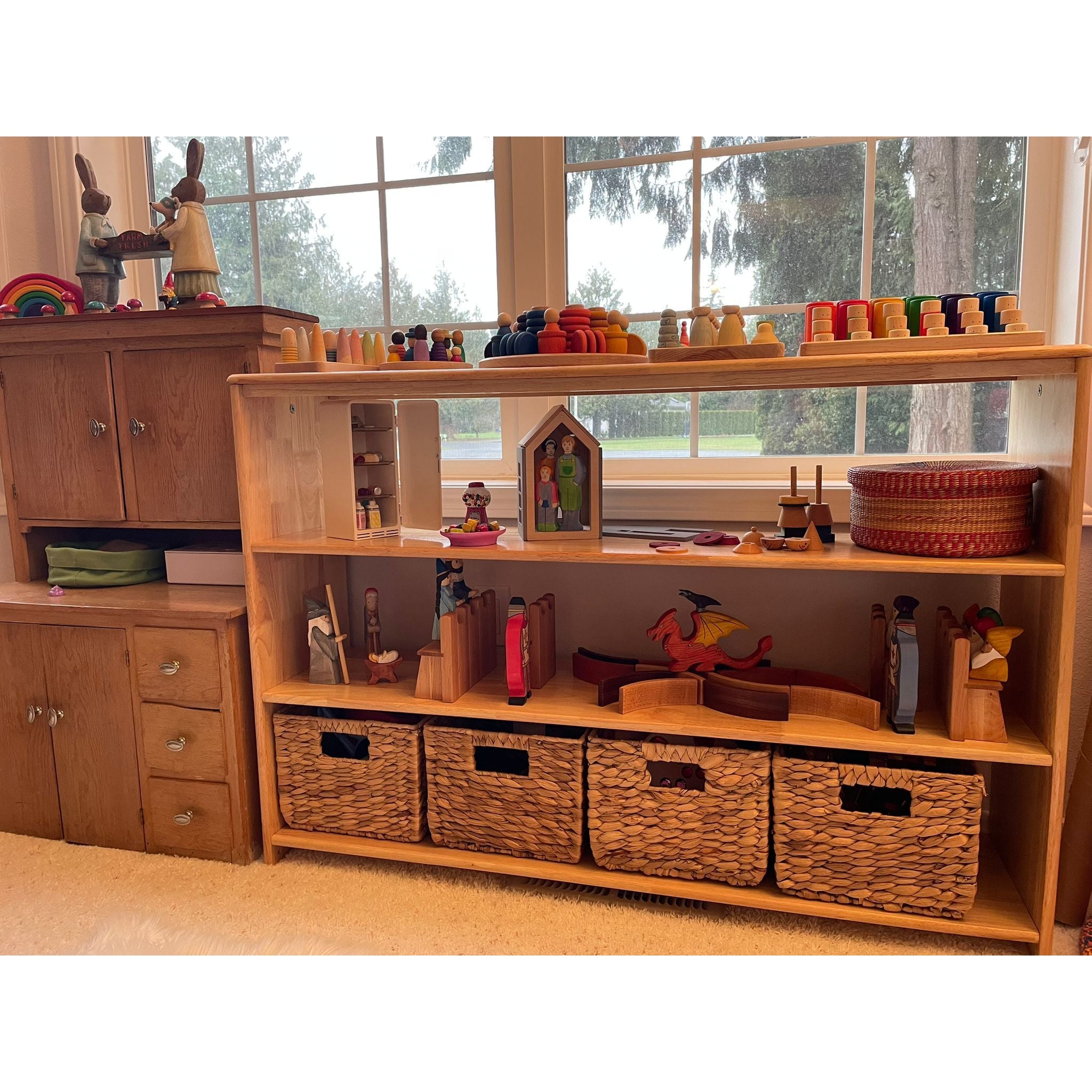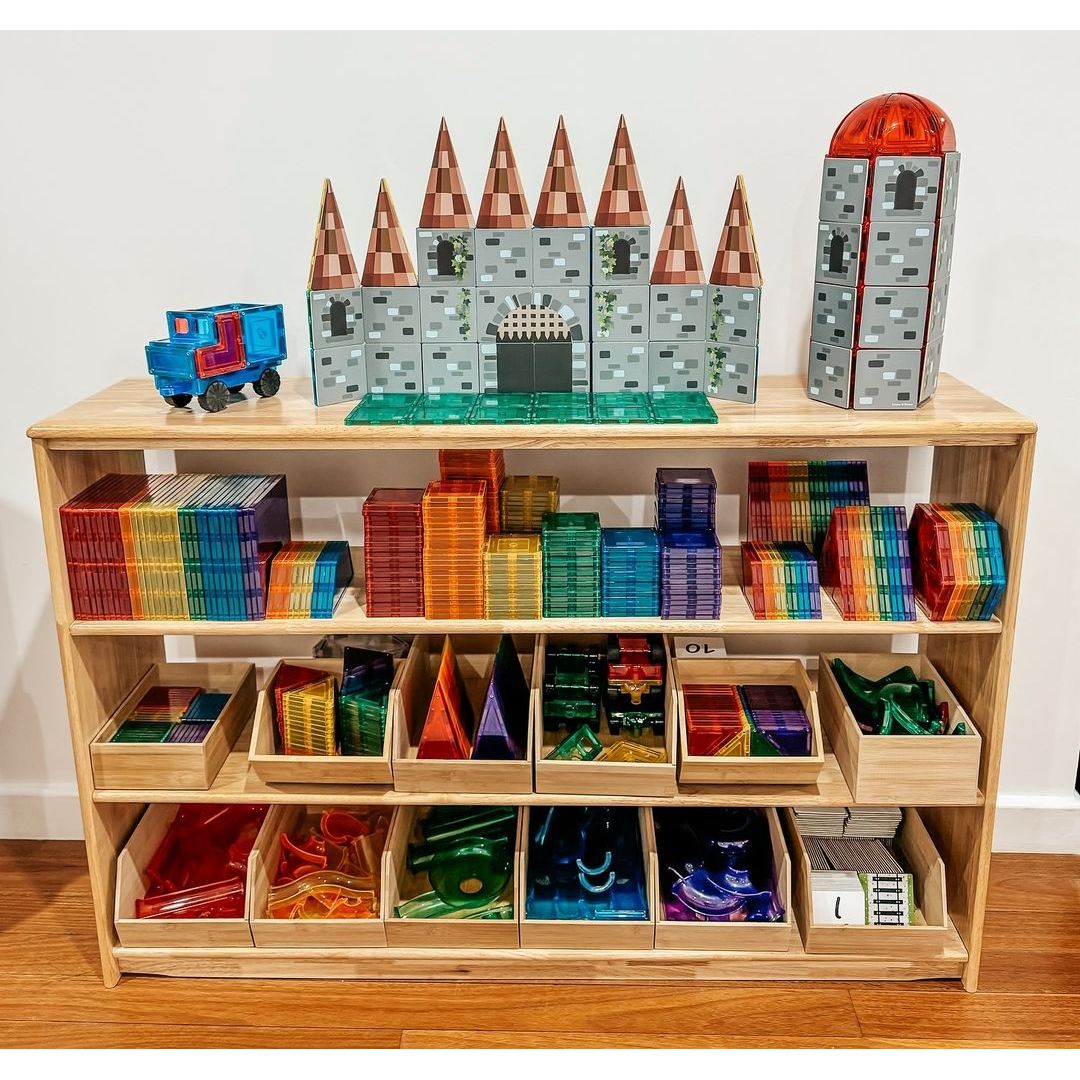 4 Tier Open-ended Toy Shelf -- Varnished Solid HardWood
