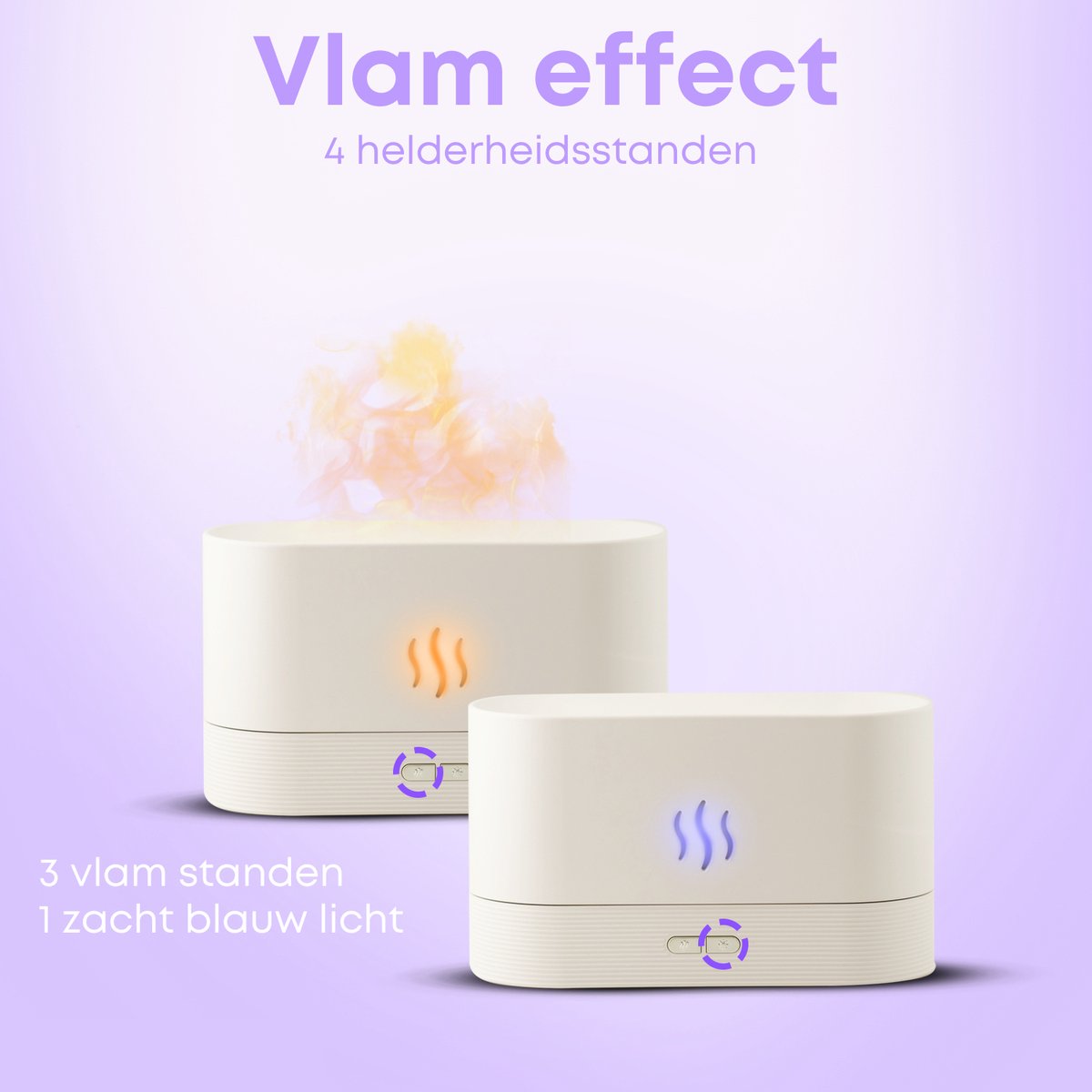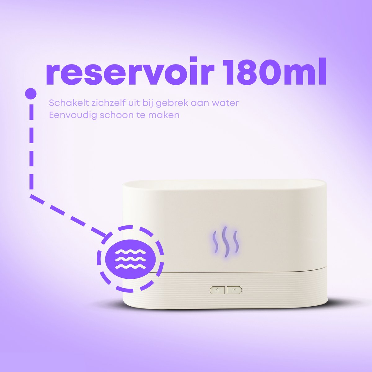 The Boostiv aroma diffuser with flame effect and LED lighting is a true asset to your home and well-being! With its sleek design and flame-like mist, you're guaranteed optimal relaxation and tranquility in the room. The mist is illuminated by soft LED lighting, giving your room a soothing fireplace effect at different positions. All of this makes this aroma diffuser not only visually appealing, but it also has a number of useful functions. Get rid of unpleasant odors and say hello to your favorite fragrance! Do you suffer from unpleasant smells in the room? Bad odors disrupt peace and relaxation. The aroma diffuser helps purify and humidify the air, dispelling unpleasant odors and dry air. This device can also be used as a humidifier without aromatherapy and provides moisture for dry coughs, sinus irritation, and dry skin, while also preventing airborne bacteria. By adding just a few drops of your favorite essential oil to the water reservoir, the aroma diffuser releases the most delightful fragrances throughout the room! Soothing Flame Effect: What makes the Aroma Diffuser so unique is its special and elegant flame effect. Thanks to special ultrasonic technology combined with LED lighting, the diffuser's mist resembles a warm fireplace flame! This creates a unique and soothing experience in the space, without the need for a real fireplace. The movement of the 'flame' promotes rest and relaxation for the eyes! Combined with your favorite fragrance, healthy humidity, and a soothing flame, the aroma diffuser is the all-in-one relaxation solution for your home! Ultra-Quiet: Thanks to its silent ultrasonic technology, this aroma diffuser operates so quietly you'll hardly notice it. Ideal for the coffee table, bedroom, office, nursery, living room, or any other desired space! 4-in-1 Functionality: The Boostiv aroma diffuser has four functions, so you can, of course, use the device as an aroma diffuser. If you're not using oils or other aromas, the device also functions as a humidifier. The device also provides a very soothing ambient light thanks to its special flame effect, and it serves as a nightlight with its various lighting modes! Suitable for All Aroma Oils: The aroma diffuser is suitable for essential and fragrance oils from all brands. If you wish to use the diffuser for aromatherapy, we recommend using 100% pure essential oils. The fragrance of your favorite oil is diffused into the room by the nebulizer. Safe with Automatic Shut-Off Function: With its 180 ml water tank capacity, this aroma diffuser can easily refresh rooms up to 25 m² for 6 hours. With its automatic shut-off function when the water tank is empty, this aroma diffuser turns off automatically after 5 seconds. The diffuser is easily portable and ideal for home, yoga studios, bedrooms, offices, nurseries, and more. Boostiv Aroma Diffuser: ● 4-in-1: Aroma Diffuser + Humidifier + Night Light + Mood Lamp ● Easy to use: user-friendly buttons ● Automatic shut-off function (when the water runs out) ● Quiet (The Boostiv Aroma Diffuser stands out from other diffusers by focusing on rest, relaxation, and well-being, thanks to high-quality electronics. Every component of the diffuser is CE certified. Many aroma diffusers fail to deliver the important "peace" factor due to their numerous bright colors and uninspiring designs. The Boostiv Aroma Diffuser offers the ideal package to create tranquility in a room with its warm white light combined with a flame effect!)
