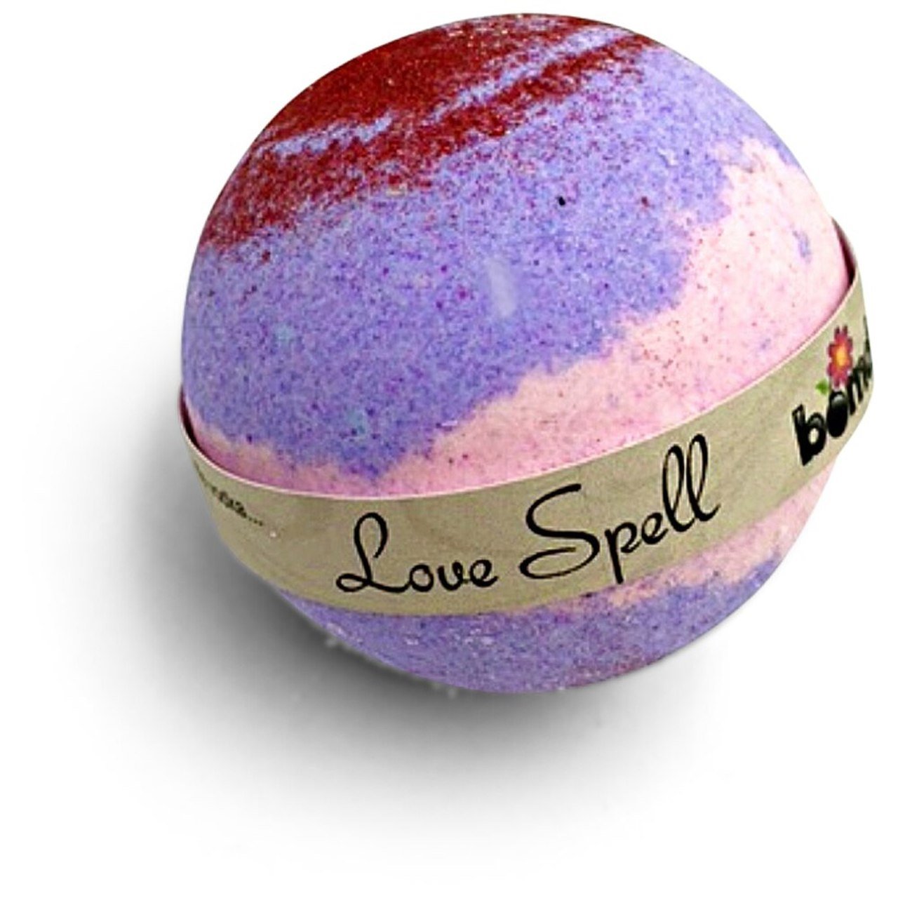 - Love Spell Bubble Bath Bomb - Drift away to the scent of fruity sweet notes including Italian Bergamot, White Lady Peach and Strawberry mixed with middle notes of Apple Blossom, African Tamarind and a touch of Damask Rose will take you to a magical place. The base note is Tonka Bean, Coconut Milk and White Musk.