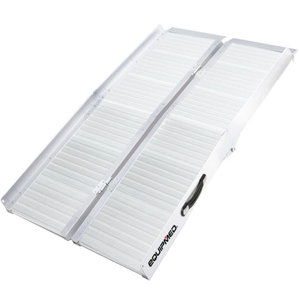 Equipmed ramps are expertly machine welded with non-slip serrated slats and side rails for peace of mind. The ramp comes complete with 2 x locking pins that keep it folded when carrying.