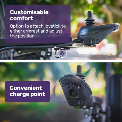 Twin motors offering a total of 500 watts offer an enjoyable riding experience with smooth and responsive performance, not to mention the ability to climb hills and ramps right up to a 15-degree incline! A tight 1m turning circle offers the manoeuvrability you need on paths and in places like shopping centres and airports.