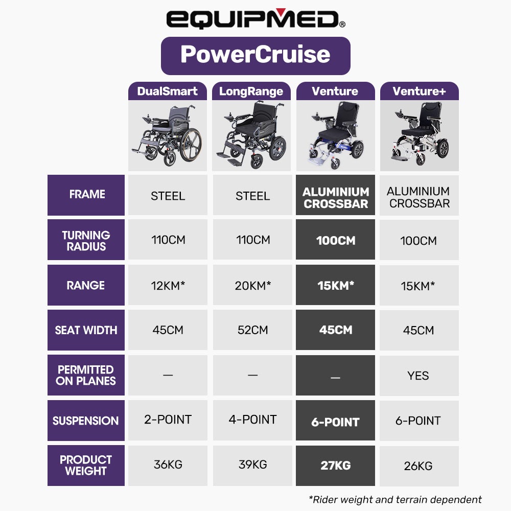 1 x Equipmed PowerCruiseVenture Wheelchair