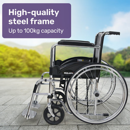 Practicality, reliability and comfort is required to provide well deserved freedom and confidence. This premium wheelchair has a sturdy steel frame with a stylish chrome finish that can hold up to 100kg.