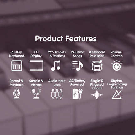 Loaded with 255 timbres, 255 rhythms, 8 keyboard percussions, and 24 demonstration songs, this keyboard offers a full range of sounds for practicing and writing music. It's perfect for both beginners and intermediate users looking to upgrade to a feature-rich keyboard.