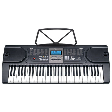 This multi-function keyboard runs on either batteries or wall cord for the ultimate portable convenience. It also comes with a keyboard stand and music sheet holder.