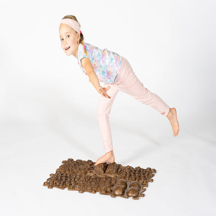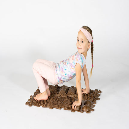 The Eco Sensory Playmat set features floor tiles that are one step closure to nature. Made with eco-materials with Real Wood, walnuts, roots, coconut shell, and pinecones; these activity mats even have a pleasant woody fragrance!