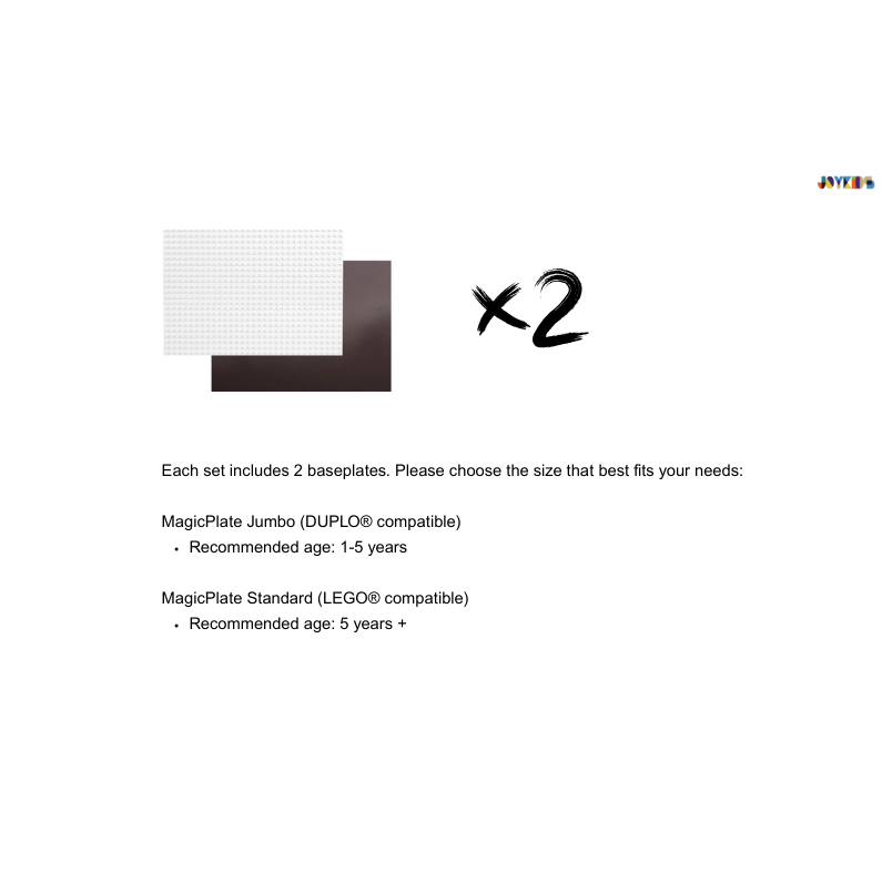 - MagicPlate Jumbo (DUPLO size): 1–5 years