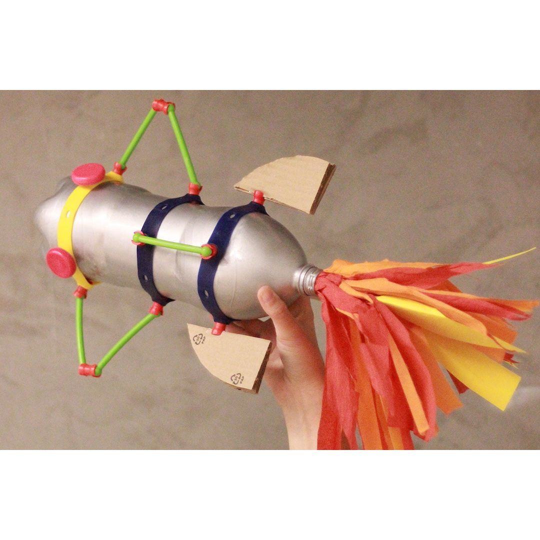 Toyi's Spaceship Building Arts and Craft Kit is a 48 piece super fun building set for kids who loves cars and construction vehicles! Transform a plastic bottle into a rocket or a strainer into a spaceship with Toyi Spaceship Building Arts and Craft Kit.