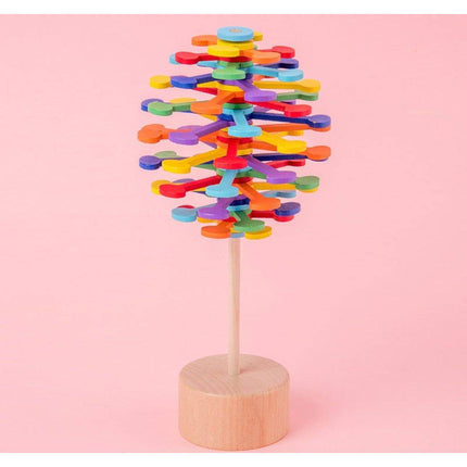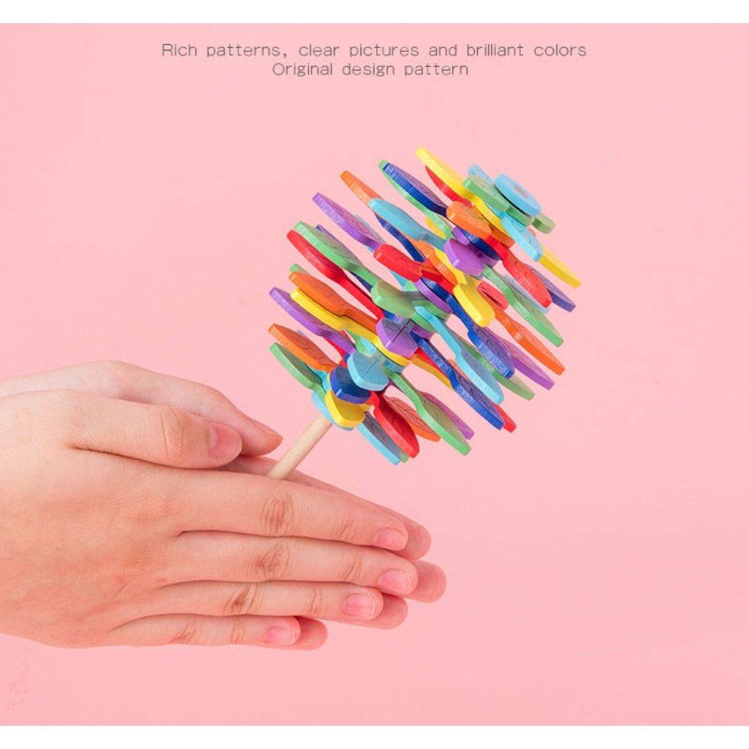 1. Just flip the toy over to present the magic wand to players in different shapes. Rotate clockwise and all the leaves will separate like a tree. Rotate counterclockwise and the leaves will gather together like a lollipop.