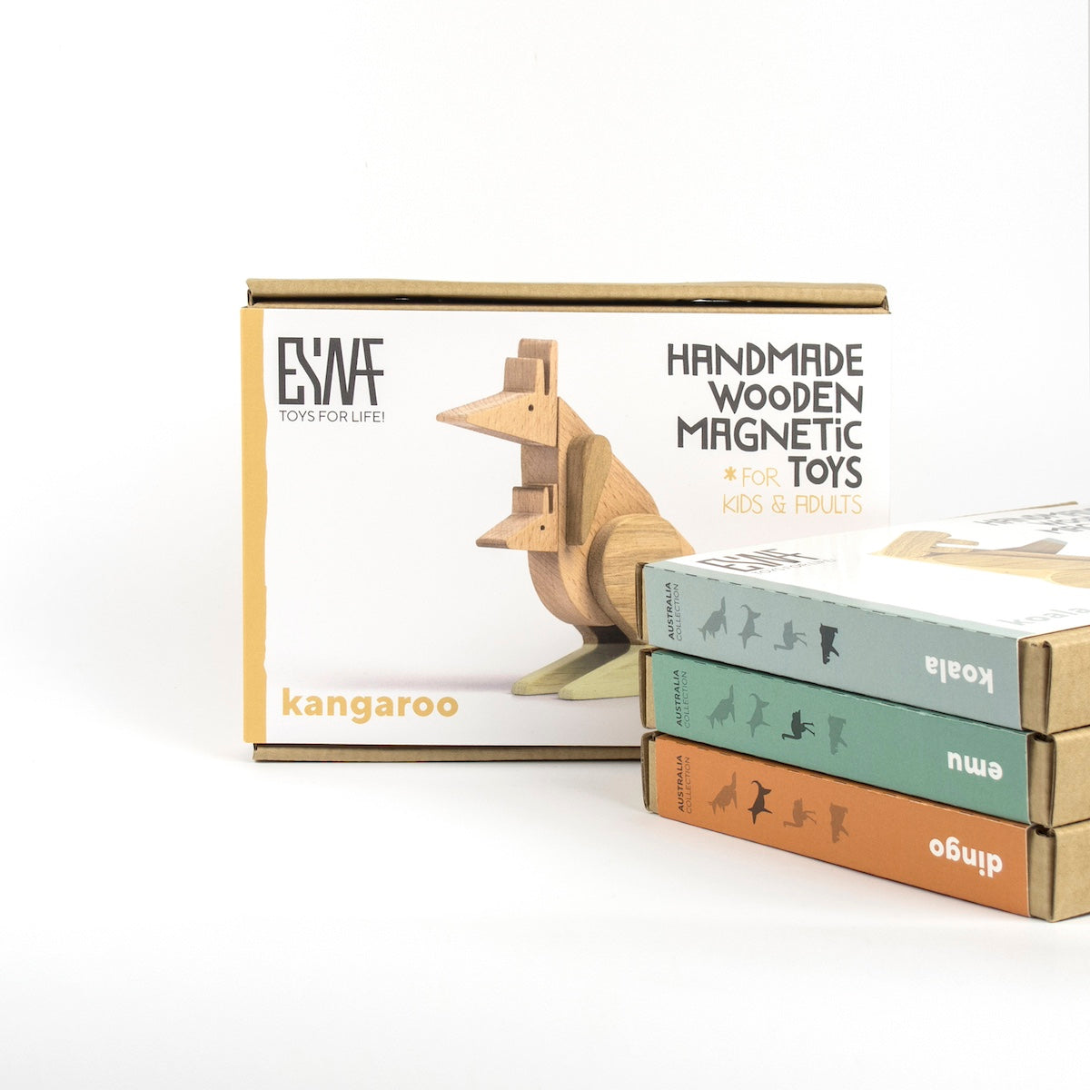 Experience the joy of open-ended play with our handmade Wooden Magnetic Kangaroo Puzzle Toy. Made in Europe with non-toxic materials, this innovative toy promotes fine motor skills, sensory development, and learning for both kids and adults. Perfect for gifting at birthdays, baby showers, or any special occasion. Eco-friendly and hand-painted, this toy is a must-have for therapy clinics, gift shops, and child care facilities.