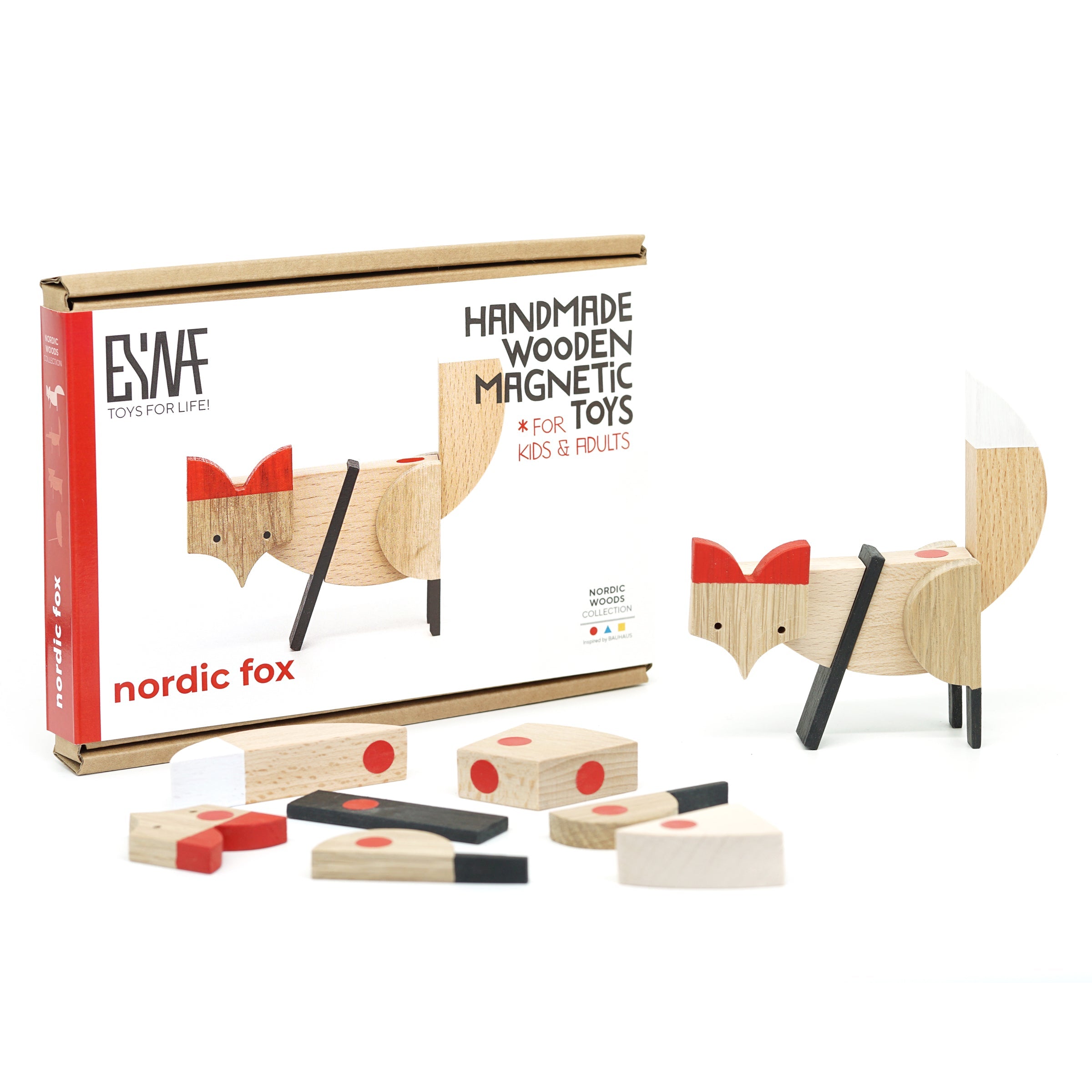 Meet the Wooden Magnetic Nordic Fox Toy - a handmade, magnetic toy made with premium beech and oak wood. Each figure is a set of wooden parts with built-in magnets in a unique colour, which allows anyone to easily assemble an animal or choose to make its own fun creature. Its natural materials and smooth edges makes it further safe even for kids with sensitive skin.