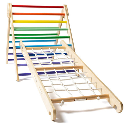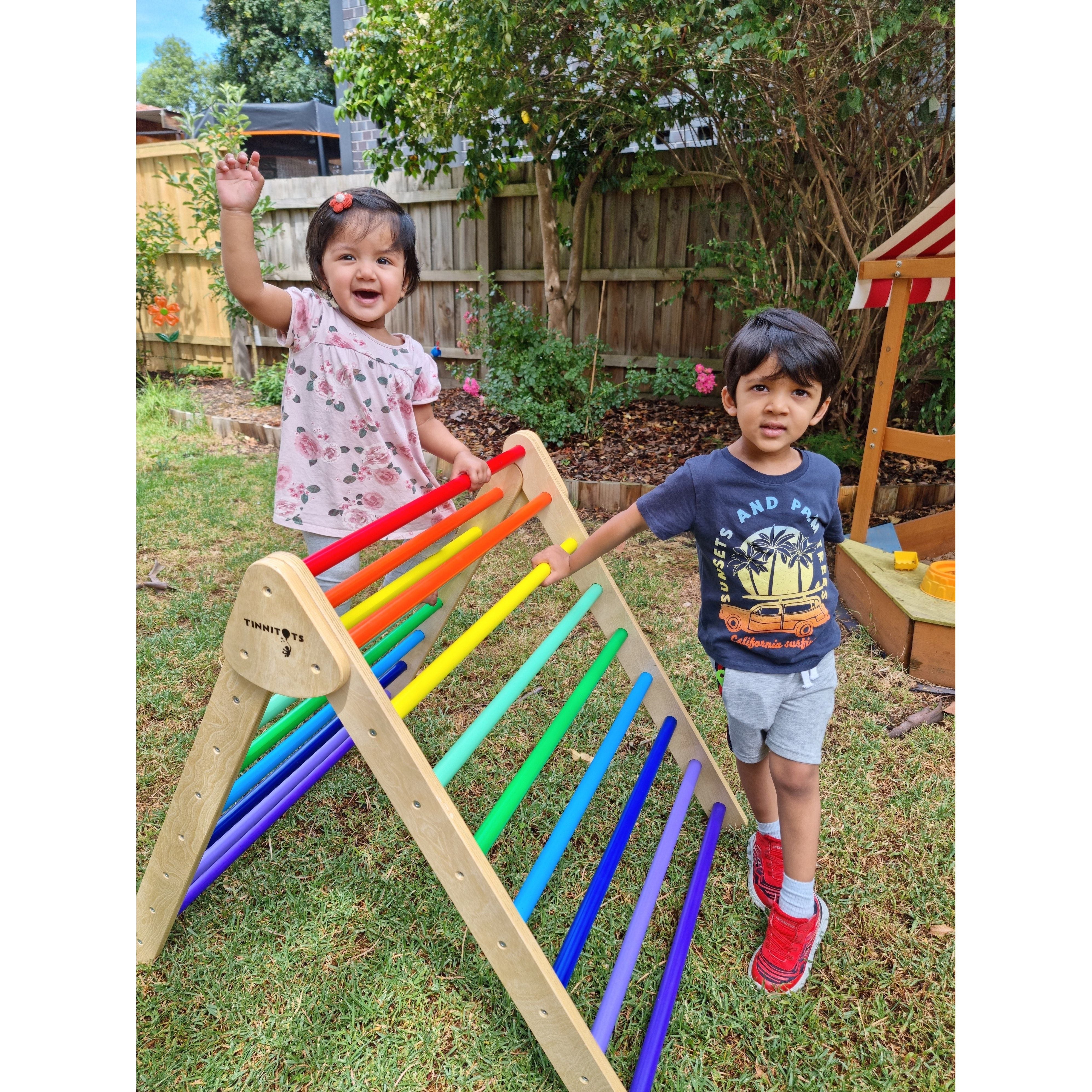 Our large foldable Pikler Triangle is a wooden climbing frame specially designed to work with your baby, toddler, and even older children. It is fun and educational and can encourage children to play together.
